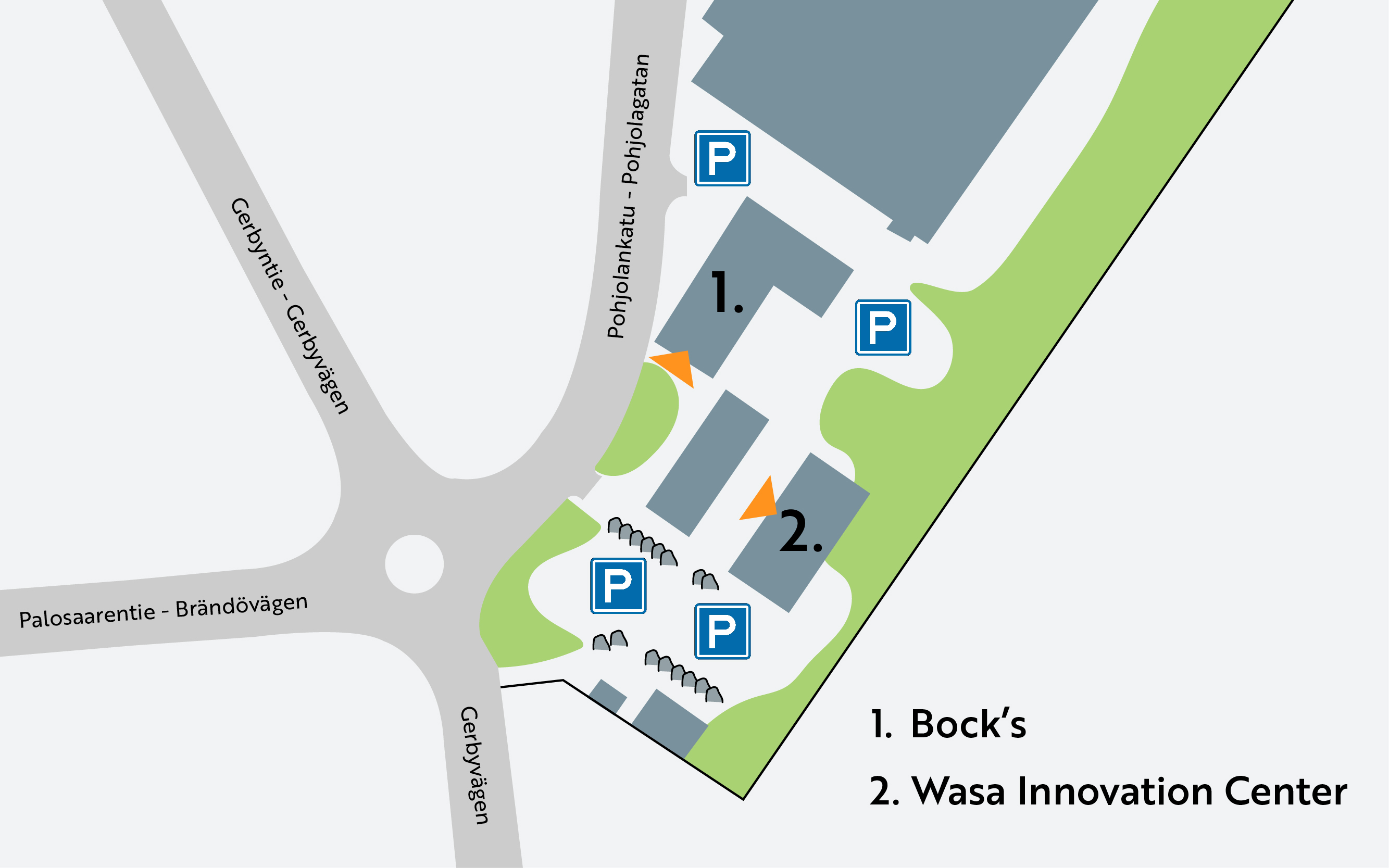 The venue Wasa Innovation Center is located at Gerbyntie 16 in Pukinkulma, Vaasa, next to the Bock’s Brewery restaurant which is 2,5km from the railway station. There are parking lots next to the venue.